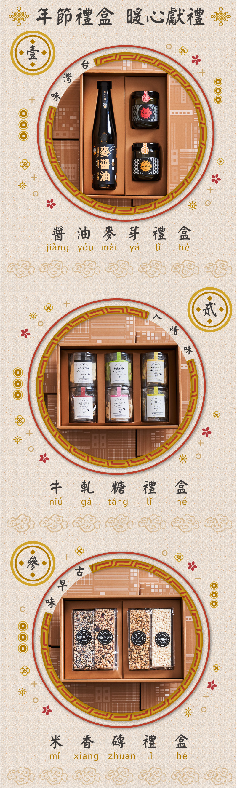 麥醬油、原味麥芽糖、麥椒麻各一入